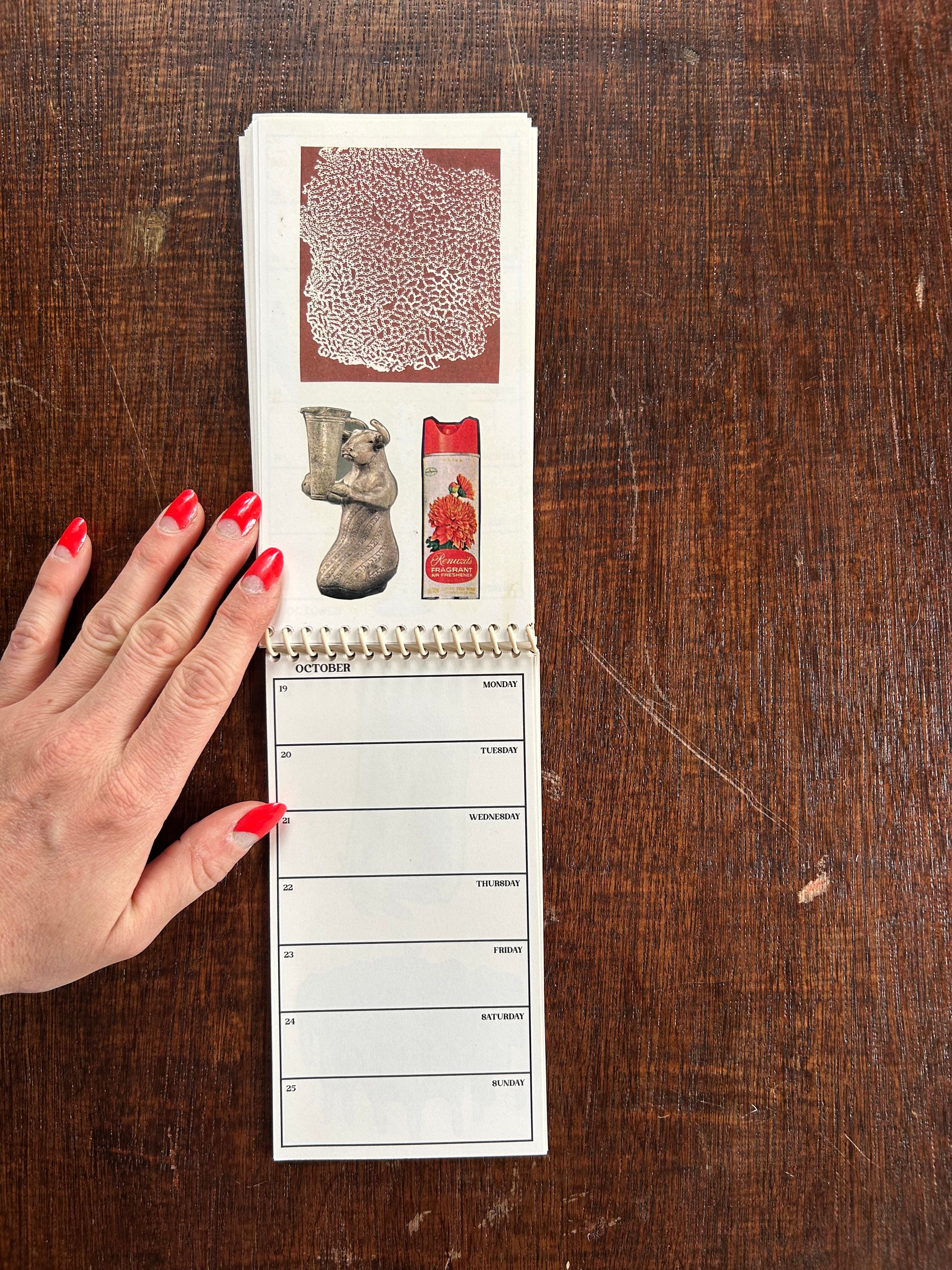 this planner is modeled after a one-off I made for my own use last summer. I loved the vertical feel of the whole object, and the simple horizontal boxes for the days of the week.